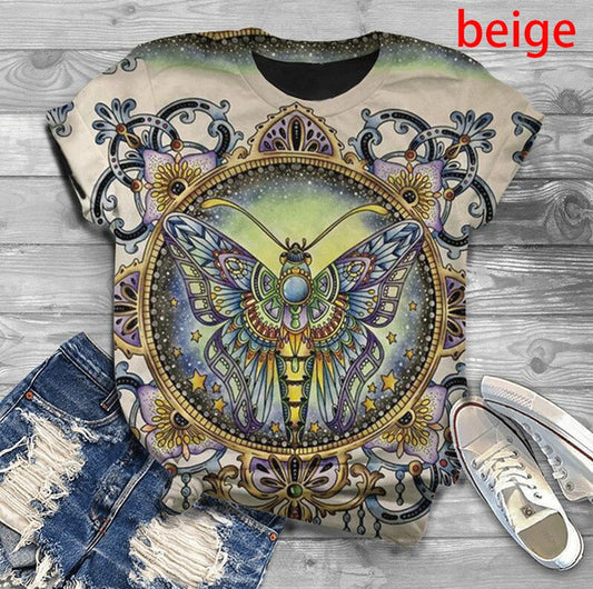 Women's Fashion Floral Butterfly Print Fitness Short-Sleeved T-Shirt Top